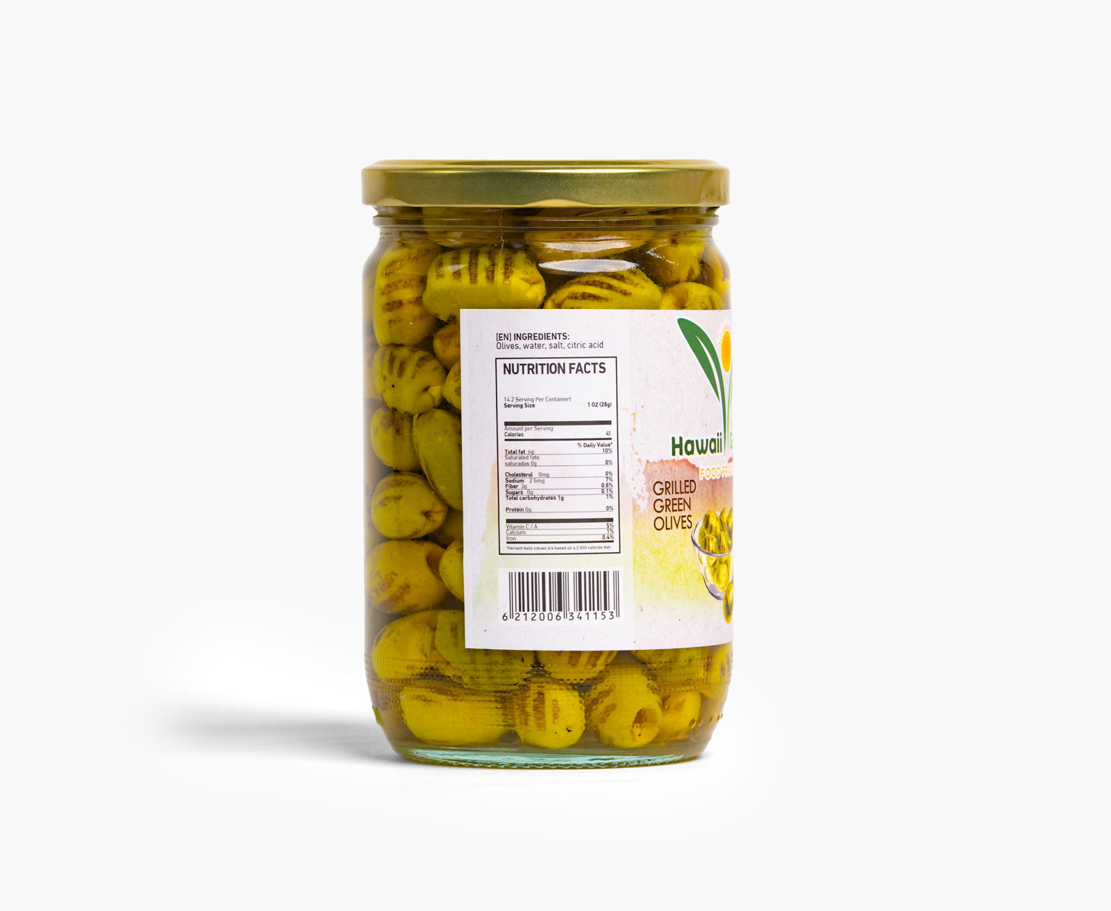 Smoky, flame-grilled green olives.